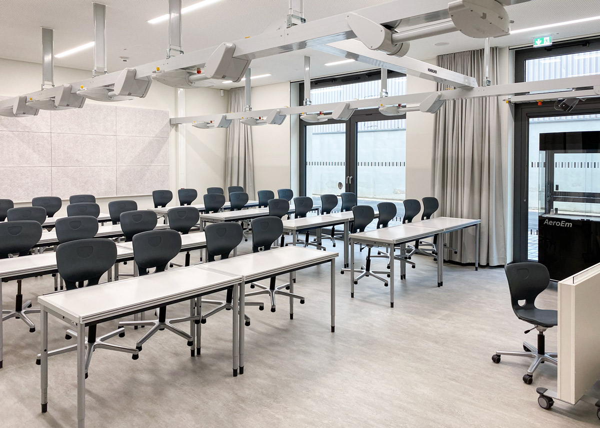 Das Lernhaus als auch das Pädagogische Zentrum werden über einen Medien-kanal im Untergeschoss verbunden. Ausgehend von diesem Medienkanal wird das komplette Gebäude mit sämtlichen Medien der technischen Gebäudeausrüstung (Heizung, Lüftung, Sanitär und Elektrotechnik) versorgt. Die Wärmebilanz ergab eine Heizlast von ca. 1500 kW. Das Energiekonzept sieht Sole-Wärmepumpen mit 60 Stück Tiefenbohrungen bis 99m vor. Das Gebäude verfügt über 14 Stück RLT-Anlagen mit einer Gesamtluftleistung von >400.000m³/h. Fachklassen erhalten separate PPs Ventilatoren für die Sonderabluft der Degistorien. Es wurden 2 Trafostationen mit 630kVA vorgesehen. Das Gebäude verfügt über eine flächendeckende Brandmeldeanlage. Zusätzlich wurde ein EMA vorgesehen. Das Gebäude verfügt über ein komplettes Netzwerk / EDV-Verkabelung. Die Beleuchtung wird über LED-Technik realisiert.
